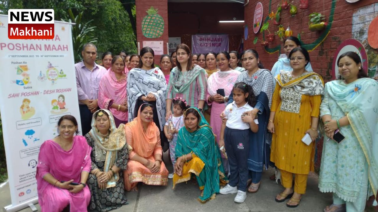 With high zeal today also various activities have been conducted at the 450 Anganwadi Centres. The most eye-catching event for today was the community-Based event organized at the Anganwadi center sector 41. During the event, various activities i.e. Demonstration of Punjabi Corner (POSHAN Ka Charkha), HB, Sugar, Weight, and Height Check-up camp, Distribution of medicines (Iron Folic Acid, Calcium, etc.), Godbhari of 7 Pregnant Women and Demonstration of Millets recipe i.e. “Bajre ki Khichdi”, “Ragi and Besan ka chilla” and “Ragi ka halwa” was given to the beneficiaries by Chef Ishan, Maharishi Markandeshwar University. Beneficiaries enthusiastically participated in this activity and expressed their views to increase the millets in their daily routine diet. In addition to this, a Godbharai event was organized to encourage pregnant women for regular antenatal checks to eat a healthy and nutritious diet during pregnancy. Dr. Poonam Khanna and Dr Rachna from PGMIER, UT Chandigarh have taken an awareness lecture on the Introduction of millets in daily routine that may help to improve the immune system and about Eat Right Campaign. Further, the Anemia and Sugar Testing Camp was also conducted for all the beneficiaries. Ms. Palika Arora, PCS, Director of Social Welfare, Women & Child Development grassed the occasion as Chief Guest. The event was also remarked with the presence of Ms. Parminder Kaur, Deputy Director of Social Welfare, Sarita Godwani, State Consultant (CB & BCC), POSHAN Abhiyaan.