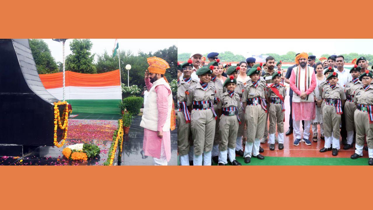 The Chief Minister inspected the parade, took the salute, and paid homage to martyrs at the Shaheedi Smarak. Families of freedom fighters were also honoured during the ceremony, which drew a large gathering of residents and officers.