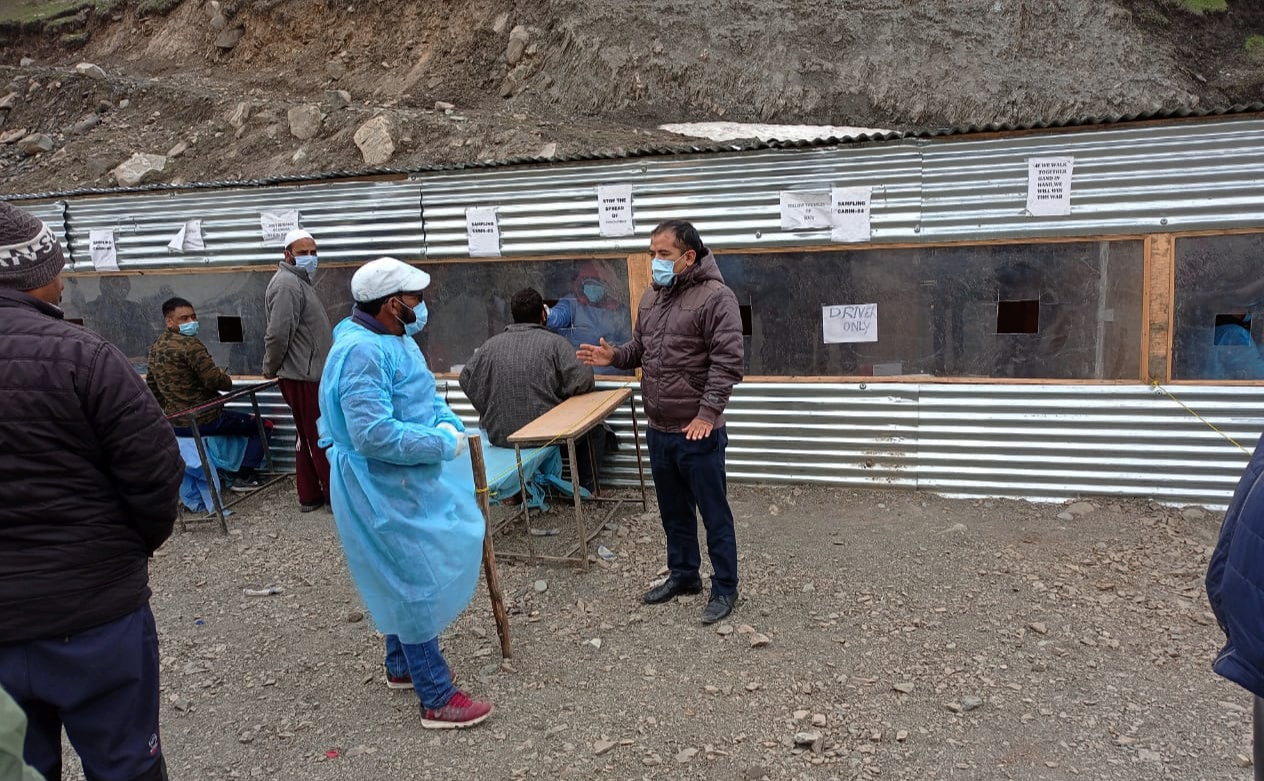 KARGIL MAY 11,2021: On the direction of the District Magistrate/Deputy Commissioner and CEO, LAHDC, Kargil Santosh Sukhadeve, Nodal Officer Monitoring, Screening Points/Labour Camps and Assistant Commissioner Revenue (ACR), Kargil Shabir Hussain inspected the screening activities including the screening measures for non-residents at Screening Point Meenamarg here today.