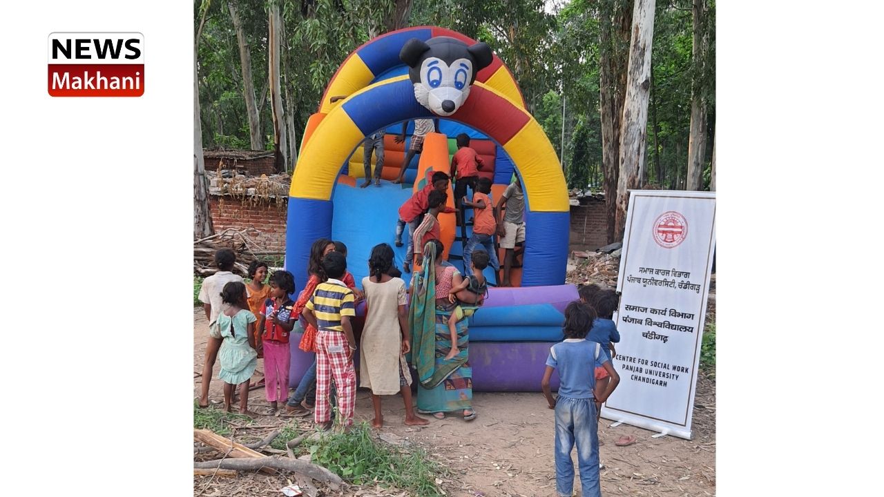 These were a few of the narratives which were said by these children while playing with this air filled Ballon called as the Bouncee. This event was organized at a construction site in sector- 25, Panjab University, Chandigarh to mark the 75 year of Independence Aazadi ka Amrut Mahotsav during the ongoing 2nd National Social Work Week by the Centre for Social Work.