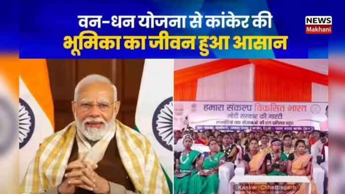 Smt Bhumika Bhuaraya who belongs to an agricultural family from Kanker, Chhattisgarh upon interaction with the Prime Minister informed that she works as a Secretary of one of the 29 Van Dhan groups in her village and she has availed the benefits of various government schemes including Van Dhan Yojna, Ujjwala Gas Connections, Jal Jeevan, MNREGA Card, Ration Card, and PM Kisan Samman Nidhi.