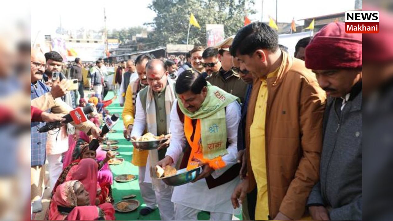 Chief Minister Dr. Yadav along with public representatives participated in the Bhandara being held at Shri Ramraja Darbar and accepted prasad.