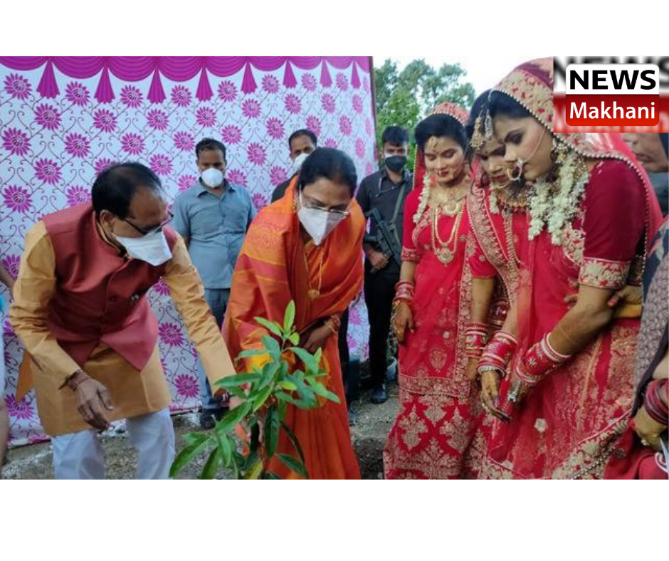 CM Shri Shivraj Singh Chouhan along with his wife Smt. Sadhana Singh planted Rudraksh, Peepal and Banyan saplings in Vidisha on Thursday. On Thursday, CM Shri Chouhan had reached the wedding ceremony of his adopted daughters Sushri Preeti, Radha and Suman in the Shri Barhwale Ganesh temple complex in Vidisha. During the programme, apart from the three brides, public representatives also took part and made the wedding occasion memorable.
