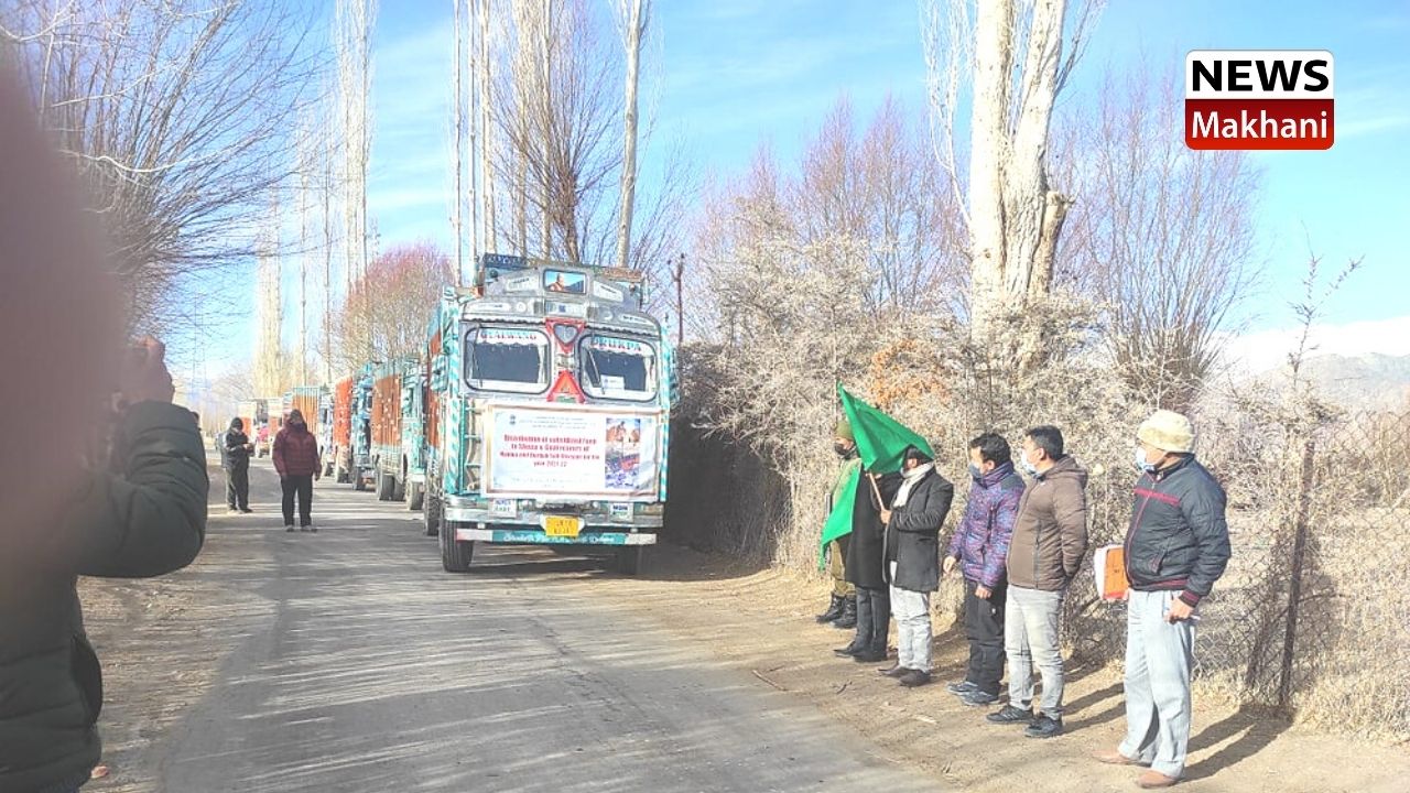 Executive Councillor, Sheep, Tashi Namgyal Yakzee today flagged off subsidized livestock feed to 54 villages of Changthang and other blocks of Leh district, in presence of Deputy Commissioner, Leh, Shrikant Suse; Councillor Chushul, Konchok Stanzin and District Sheep Husbandry Officer (DSHO) Leh, Dr Tundup Namgail.