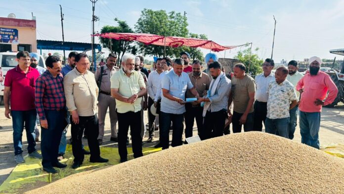 The Food, Civil Supplies and Consumer Affairs Minister Mr. Lal Chand Kataruchak today took stock of the wheat procurement operations at the Sarna Dana Mandi (Rajan Ki Mandi) under Bhoa constituency and formally initiated the procurement process. He also interacted with the farmers and other stakeholders on the occasion.