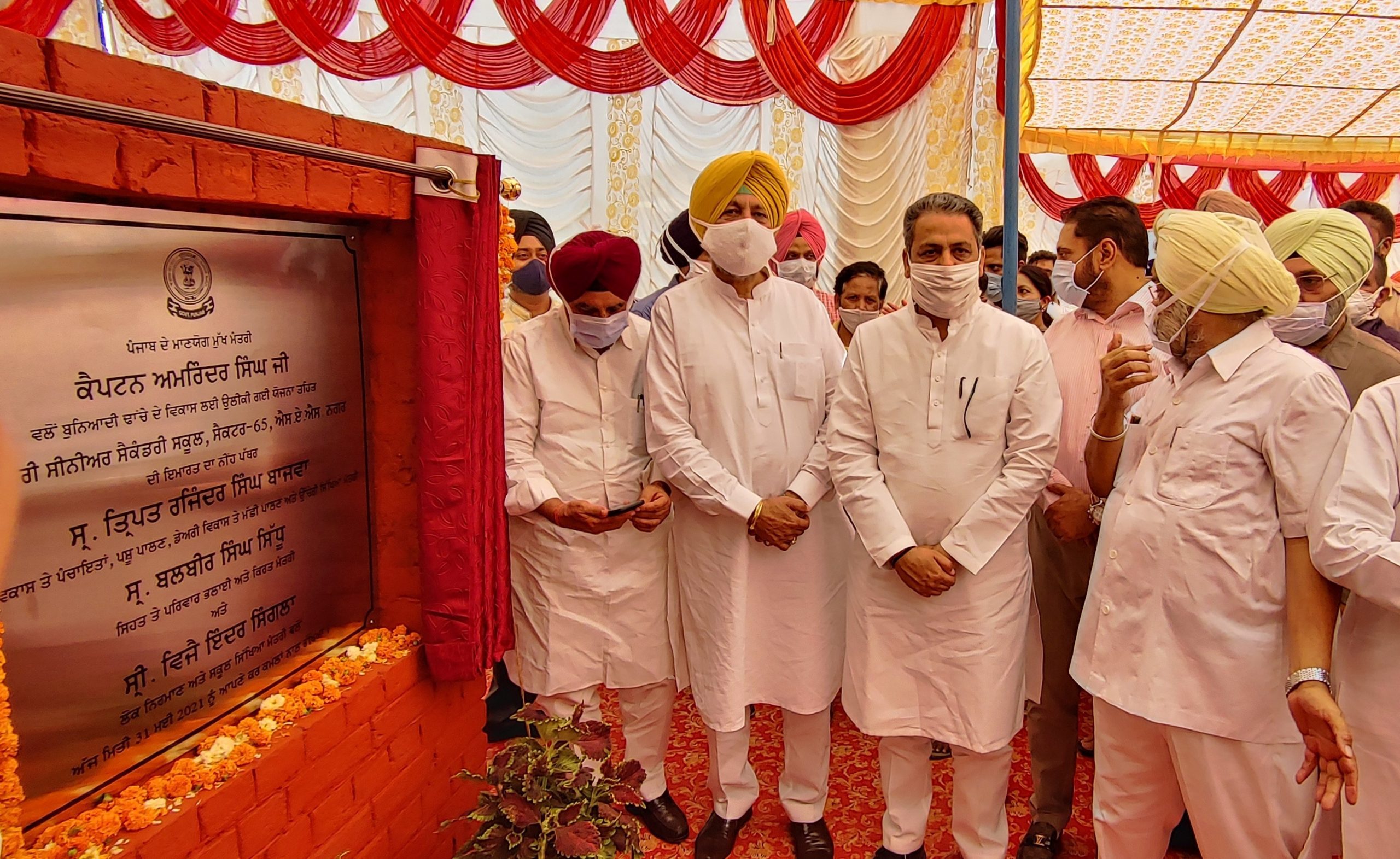 The foundation stone of Government Senior Secondary School, Sector 65 was laid jointly by Tript Rajinder Bajwa, Minister for Rural Development, Mr. Vijay Inder Singla, Education Minister and Balbir Sidhu, Health Minister Punjab on Monday.