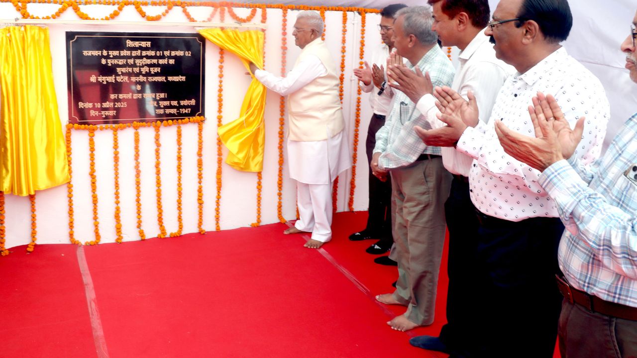 Governor Shri Patel during the program, reviewed the details of the renovation and strengthening project. He emphasized the importance of maintaining high quality standards in the construction work and instructed the agency to ensure timely completion. The total estimated cost of the renovation and strengthening of both entrance gates is Rs 66 Lakhs 32 Thousand 900 Hundred.