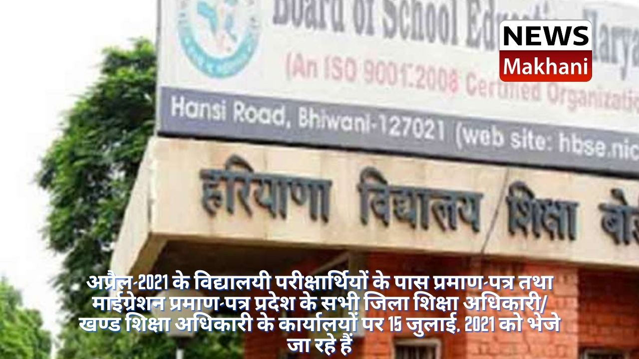 इस बारे में जानकारी देते हुए बोर्ड अध्यक्ष प्रो. जगबीर सिंह ने बताया कि प्रदेश के सभी सैकेण्डरी विद्यालयों के मुखियाओं को निर्देश दिए जा रहे है कि वे उनके विद्यालय के परीक्षार्थियों के पास प्रमाण-पत्र तथा माईग्रेशन प्रमाण-पत्र 15 जुलाई, 2021 को प्रात: 11बजे से सायं 5 बजे तक तथा 16 जुलाई, 2021 को प्रात: 9 बजे से सायं 4 बजे तक संबंधित जिले के जिला शिक्षा अधिकारी/खण्ड शिक्षा अधिकारी कार्यालय से प्राप्त कर सकते हैं।