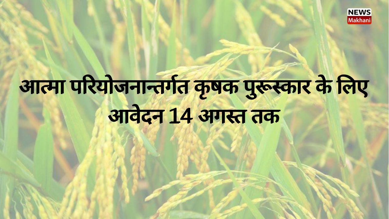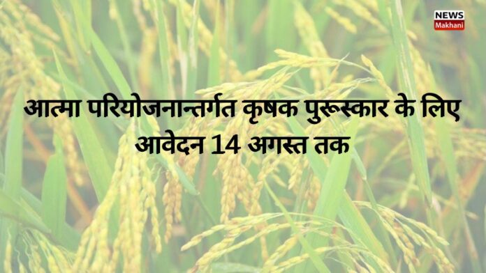आत्मा परियोजनान्तर्गत कृषक पुरूस्कार के लिए आवेदन 14 अगस्त तक