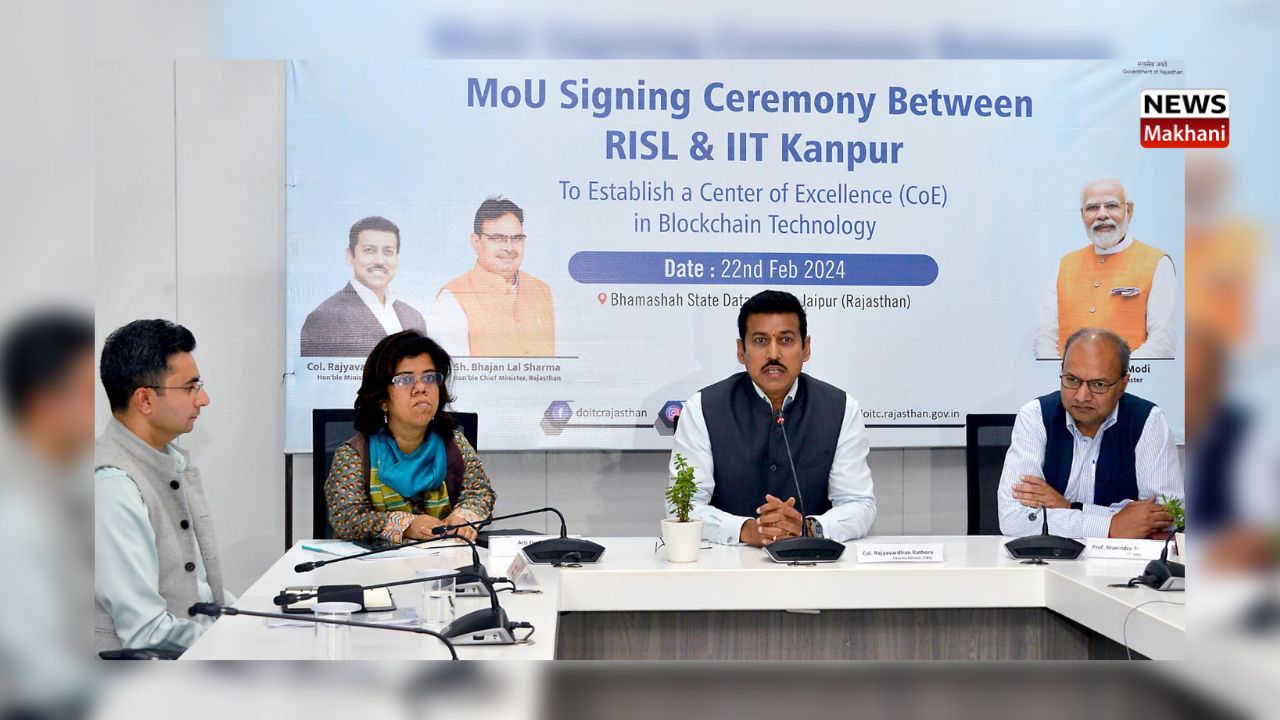 कर्नल राठौड़ गुरुवार को भामाशाह डेटा सेंटर में राजकॉम्प इन्फो सर्विसेज लिमिटेड (आरआईएसएल) और भारतीय प्रौद्योगिकी संस्थान कानपुर (आईआईटी कानपुर) के बीच एक समझौता ज्ञापन (एमओयू) पर हस्ताक्षर कार्यक्रम को संबोधित कर रहे थे। उन्होंने कहा कि ब्लॉकचेन तकनीक के क्षेत्र में आईआईटी कानपुर ने विश्वस्तर पर अपनी विशिष्ट साख कायम की है। कर्नल राठौड़ ने कहा कि ‘लैब से लैंड’ तक और ‘रिसर्च से रियल टाइम यूजेज’ तक सूचना प्रौद्योगिकी विभाग और आईआईटी कानपुर साथ मिलकर सुरक्षित और बेहतर सुशासन की दिशा में कार्य करेगा।