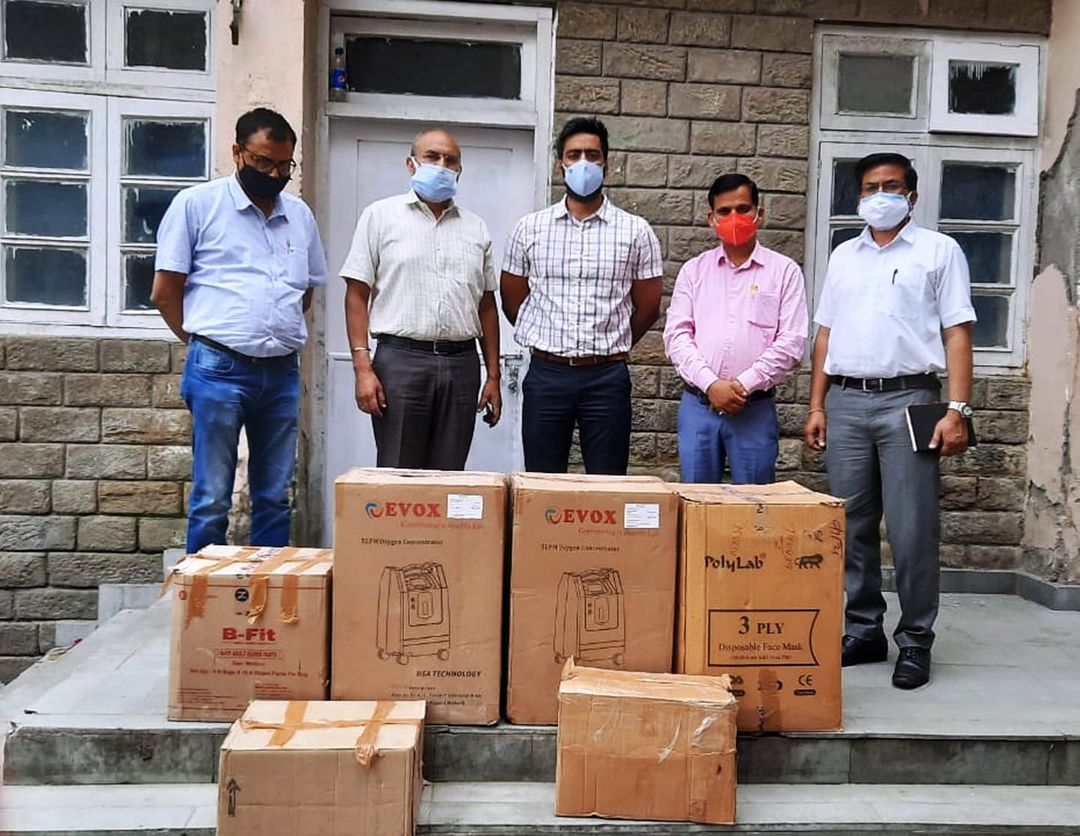 मंडी, 4 जून,2021-  मंडी जिला में कोरोना के खिलाफ निर्णायक लड़ाई में विभिन्न औद्योगिक इकाईयां सरकार व प्रशासन को बढ़ चढ़ के योगदान दे रही हैं। इसी कड़ी में मैसर्ज एफकॉन इंफ्रास्ट्रक्चर लिमिटेड मंडी ने जिला प्रशासन को ऑक्सीजन बैंक के लिए मेडिकल सामग्री भेंट की है। एफकॉन के प्रतिनिधि कर्नल बी.एस. गोराया ने यह सामग्री अतिरिक्त उपायुक्त उपायुक्त जतिन लाल को सौंपी। उन्होंने 2 ऑक्सीजन कंसंट्रेटर, 50 ऑक्सीजन फ्लोमीटर और 100 डिजिटल थर्मामीटर भेंट किए। इस अवसर पर जिला उद्योग केन्द्र मंडी के महाप्रबंधक ओपी जरयाल तथा उपायुक्त कार्यालय के प्लानिंग ऑफिसर देेेवेन्द्र कुमार भी उपस्थित रहे।