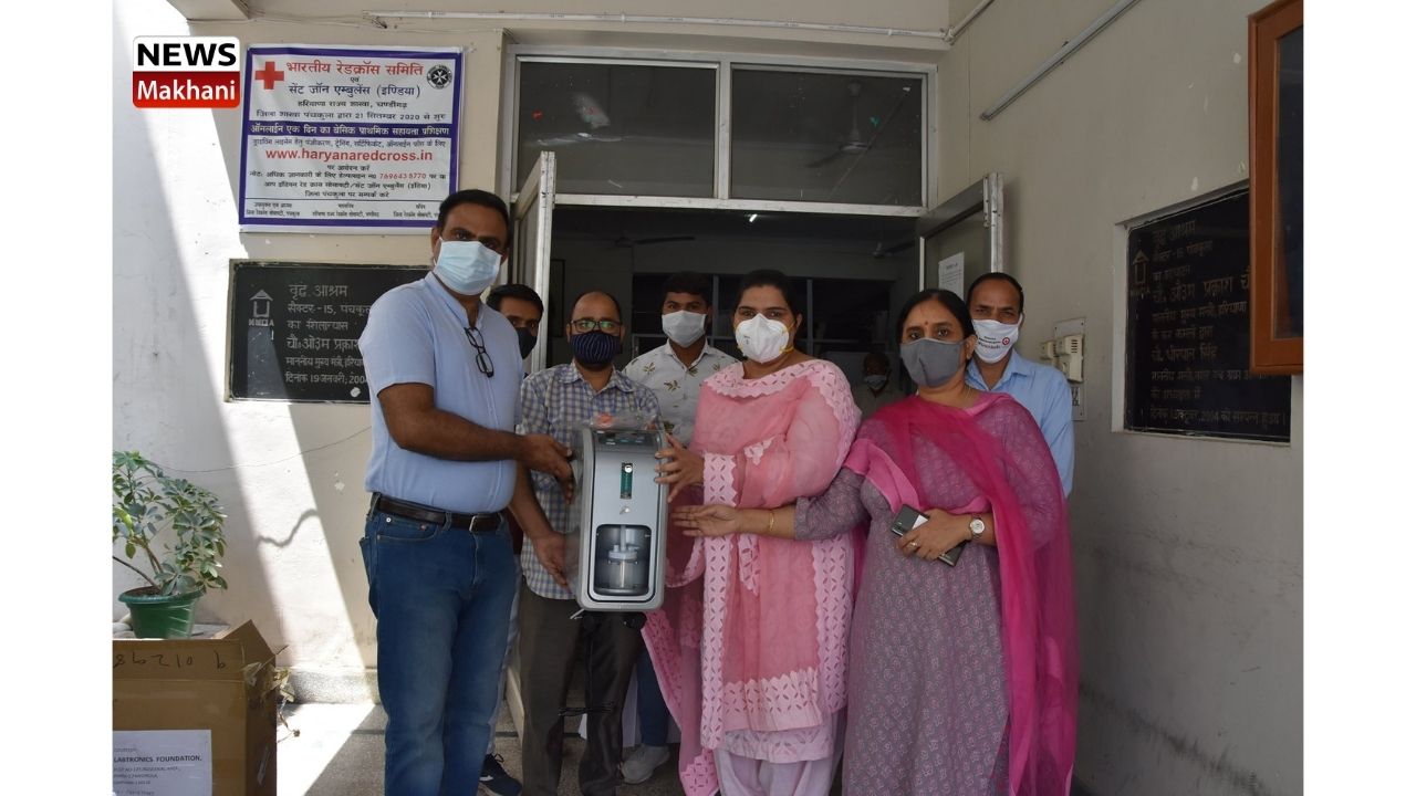 फोटो कैप्शन- 3 से 4 रेडक्राॅस सेक्टर-15 कार्यालय में राकेश सालवन एसडीएम ऋचा राठी व रेडक्राॅस की सचिव सविता अग्रवाल को कोविड-19 रोगियों की मदद के सामान भेंट करते हुये।