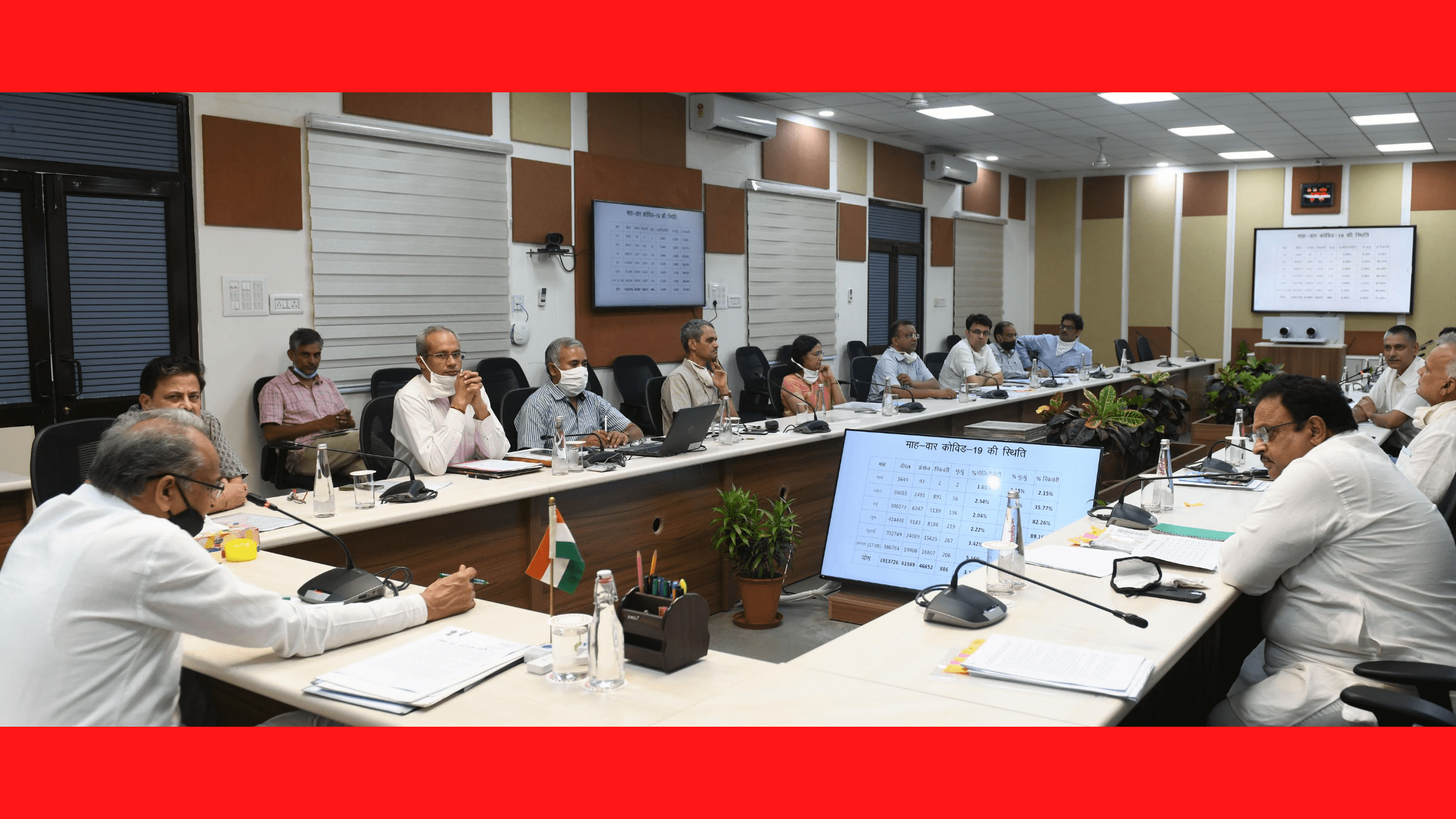 बैठक में चिकित्सा एवं स्वास्थ्य मंत्री डाॅ. रघु शर्मा, मुख्य सचिव श्री राजीव स्वरूप, अति. मुख्य सचिव वित्त श्री निरंजन आर्य, अति. मुख्य सचिव गृह श्री रोहित कुमार सिंह, पुलिस महानिदेशक श्री भूपेन्द्र यादव, अति. मुख्य सचिव सार्वजनिक निर्माण श्रीमती वीनू गुप्ता, अति. मुख्य सचिव खान श्री सुबोध अग्रवाल, प्रमुख शासन सचिव चिकित्सा श्री अखिल अरोरा, शासन सचिव खाद्य एवं नागरिक आपूर्ति श्री हेमन्त गेरा, शासन सचिव स्वायत शासन श्री भवानी सिंह देथा, सूचना एवं जनसम्पर्क आयुक्त श्री महेन्द्र सोनी सहित अन्य वरिष्ठ अधिकारी उपस्थित थे।