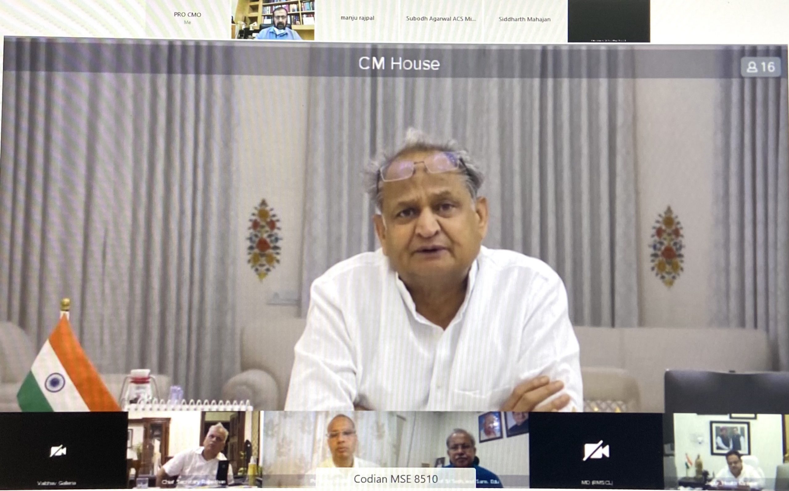 चिकित्सा सचिव श्री सिद्धार्थ महाजन ने प्रदेशभर में कोविड संक्रमण एवं वैक्सीनेशन की स्थिति, उद्योग सचिव श्री आशुतोष एटी ने ऑक्सीजन के उठाव, शासन सचिव ग्रामीण विकास श्रीमती मंजू राजपाल ने मनरेगा कार्याें, एमडी आरएमएससीएल श्री आलोक रंजन ने दवाओं की उपलब्धता की जानकारी दी। आयूएचएस के कुलपति डॉ. राजाबाबू पंवार एवं एसएमएस अस्पताल के प्राचार्य डॉ. सुधीर भंडारी ने भी विचार व्यक्त किए।