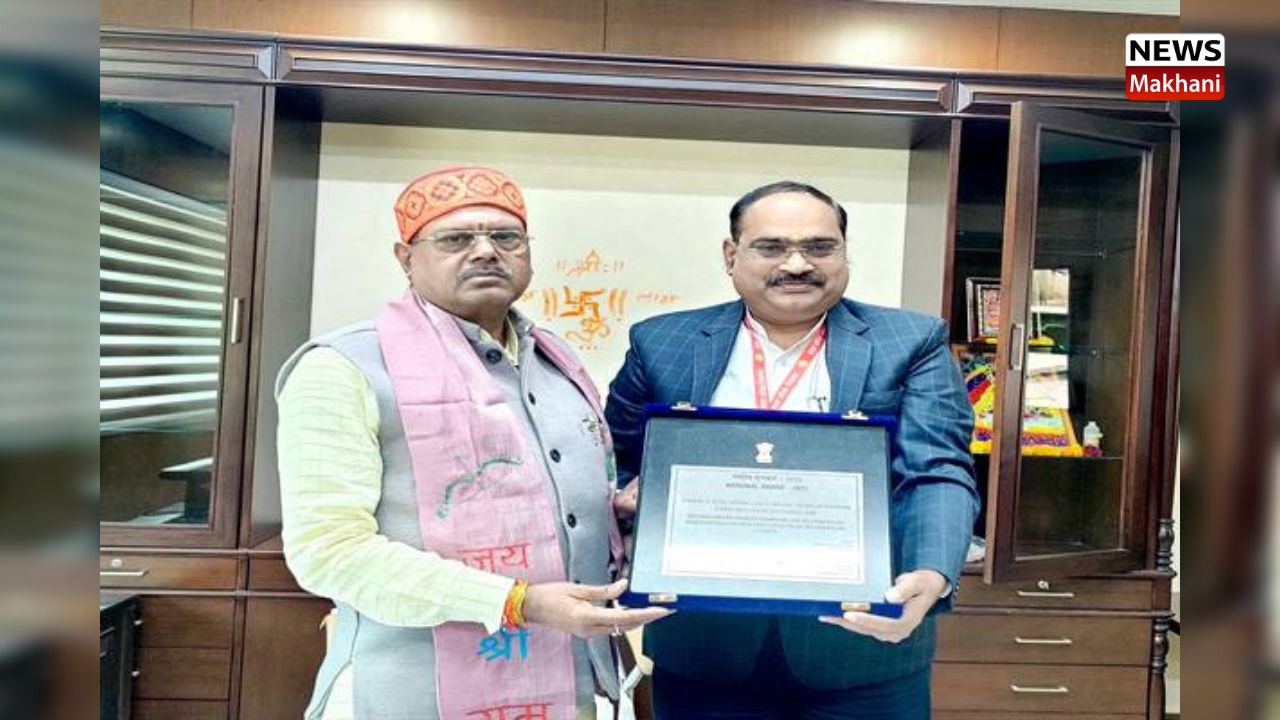 अवार्ड की प्रति मंत्री श्री कुशवाह को भेंट की
