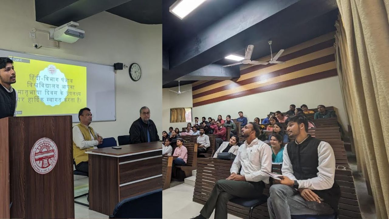 पंजाब विश्वविद्यालय के हिंदी-विभाग में अंतर्राष्ट्रीय मातृभाषा दिवस कार्यक्रम का आयोजन किया गया | कार्यक्रम में विभाग के एम०ए० प्रथम वर्ष, एम०ए० द्वितीय वर्ष एवं शोधार्थियों ने पूर्ण रूप से अपनी भागीदारी निभाते हुए अपनी-अपनी मातृभाषाओं में अपने विचार प्रकट किए और कविता पाठ किया| सर्वप्रथम एम०ए० द्वितीय वर्ष के छात्र भूपेंद्र सिंह ने मातृभाषा को परिभाषित करते किया एवं उसके सहज प्रयोग के महत्त्व को भी बताया | मातृभाषा में किया गया संवाद अधिक स्वाभाविक एवं आनंददायी होता है | विद्यार्थियों ने अपनी मातृभाषा में कविता पाठ किया | जिनके नाम इस प्रकार हैं -भूपेंद्र सिंह(एम०ए० द्वितीय वर्ष), रमनदीप कौर(एम०ए० द्वितीय वर्ष) अभिषेक पाण्डेय(एम०ए० प्रथम वर्ष), सुमित(एम०ए० द्वितीय वर्ष), मोनिका(एम०ए० प्रथम वर्ष), निखिल(एम०ए० द्वितीय वर्ष), अजय(एम०ए० द्वितीय वर्ष), एवं शोधार्थी संदीप | इसके अतिरिक्त विद्यार्थियों एवं शोधार्थियों ने मातृभाषा के सम्बन्ध में अपने विचार अभिव्यक्त किए जिनमें साहिल (एम०ए० द्वितीय वर्ष), एवं शोधार्थी राहुल, पंकज कुमार, खेमचंद, मधु कुमारी, मोनिका, अर्चना, रीना बिष्ट, पिंकी देवी हैं | अंत में विभागाध्यक्ष ने मातृभाषा को अहमियत देने, मातृभाषा से प्रेम करने एवं भाषाओं से जुड़ने की प्रेरणा समस्त शोधार्थियों एवं विद्यार्थियों को दी | कार्यक्रम में विभाग से प्रोफ़ेसर गुरमीत सिंह उपस्थित रहे |