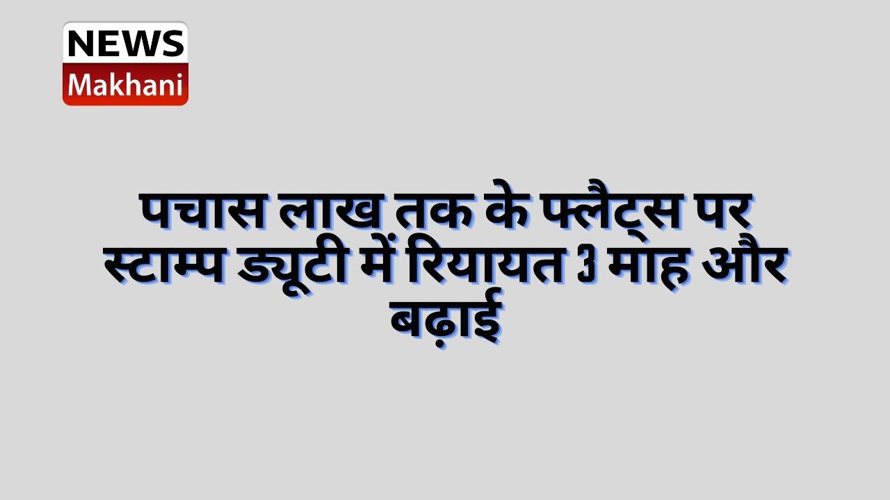 पचास लाख तक के फ्लैट्स पर स्टाम्प ड्यूटी में रियायत 3 माह और बढ़ाई