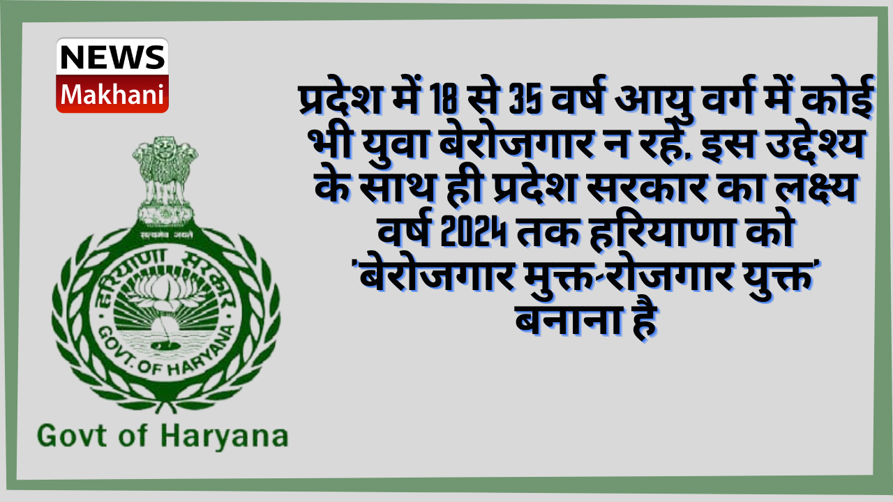प्रदेश में 18 से 35 वर्ष आयु वर्ग में कोई भी युवा बेरोजगार न रहे, इस उद्देश्य के साथ ही प्रदेश सरकार का लक्ष्य वर्ष 2024 तक हरियाणा को ’बेरोजगार मुक्त-रोजगार युक्त’ बनाना है