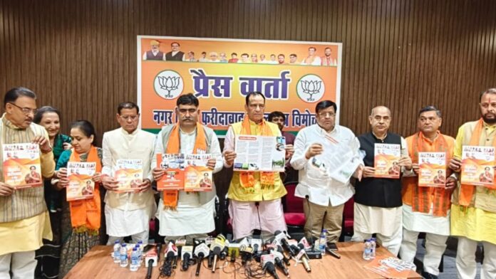 भारतीय जनता पार्टी के प्रदेश अध्यक्ष पंडित मोहन लाल बड़ौली ने ट्रिपल इंजन सरकार बनने के बाद नगरों में तेज गति से विकास होने का दावा किया। फरीदाबाद में गुरुवार को पत्रकारों से बातचीत करते हुए उन्होंने फरीदाबाद नगर निगम के लिए तैयार किए गए संकल्प पत्र की मुख्य-मुख्य बातें रखी। श्री बड़ौली ने कहा कि भाजपा का यह संकल्प पत्र फरीदाबाद के नागरिकों की आकांक्षाओं को पूरा करने वाला और जनभावनाओं के अनुसार तैयार किया गया संकल्प पत्र है। उन्होंने कहा कि भाजपा सरकार हर व्यक्ति के लिए न्याय करने वाली सरकार है। इस मौके पर संकल्प पत्र कमेटी के चेयरमैन एवं कैबिनेट मंत्री विपुल गोयल भी मौजूद रहे।