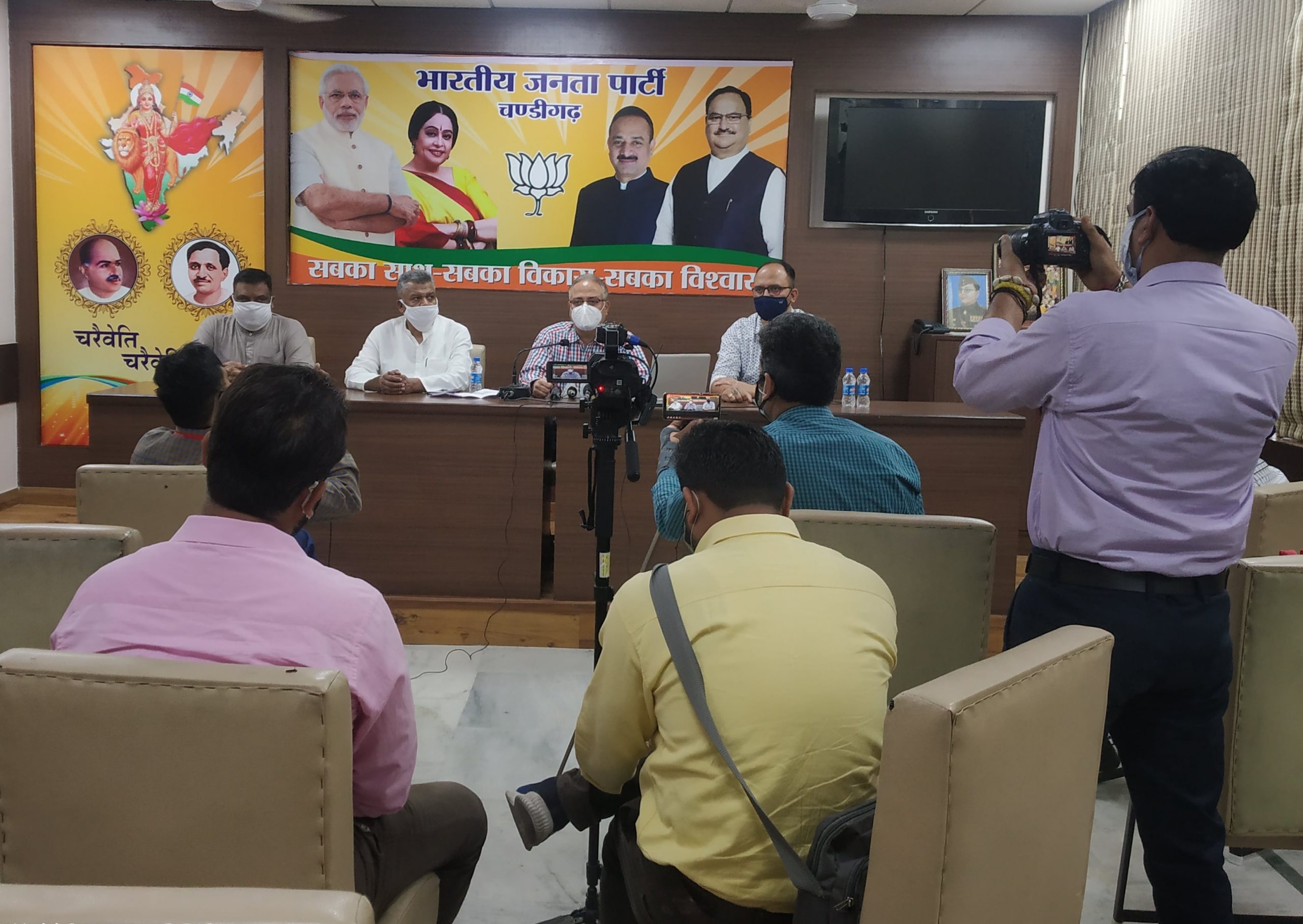 “केंद्र में मोदी सरकार के 7 वर्ष पूरे होने के उपलक्ष्य में भारतीय जनता पार्टी देश भर में गाँवों एक लाख से अधिक समाज सेवा के कार्य आयोजित करेगी और 50 हजार यूनिट रक्तदान करेगी | इसी कड़ी मे चंडीगढ़ इकाई के कार्यकर्ता भी 29 मई को पांच अलग-अलग स्थानों पर रक्तदान शिविरों का आयोजन करेंगे और 1000 यूनिट से अधिक रक्तदान करेंगे । साथ ही 30 मई को लगभग 300 से भी अधिक स्थानों पर सेवा के कार्यक्रमों का आयोजन करेंगी। वहीँ मानव सेवा के कार्यो में लगे स्वास्थय और सफाई कर्मचारियों को पार्टी द्वारा सम्मानित भी किया जाएगा और उनके बीच इम्युनिटी बूस्टर वितरित किया जाएगा।” यह बात भारतीय जनता पार्टी चंडीगढ़ के प्रदेश अध्यक्ष अरुण सूद ने आज पार्टी कार्यालय “कमलम” में आयोजित सेमी वर्चुअल पत्रकार वार्ता के दौरान कही।