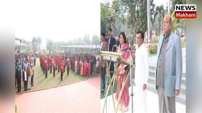 वर्ष 2024 के जनवरी माह के प्रथम शासकीय कार्य दिवस पर आज सुबह मंत्रालय स्थित सरदार वल्लभ भाई पटेल पार्क में राष्ट्र-गीत “वंदे-मातरम” एवं राष्ट्र-गान “जन-गण-मन” का सामूहिक गायन हुआ। इस अवसर पर पुलिस बैंड ने देशभक्ति से ओतप्रोत सुमधुर धुनें प्रस्तुत की।