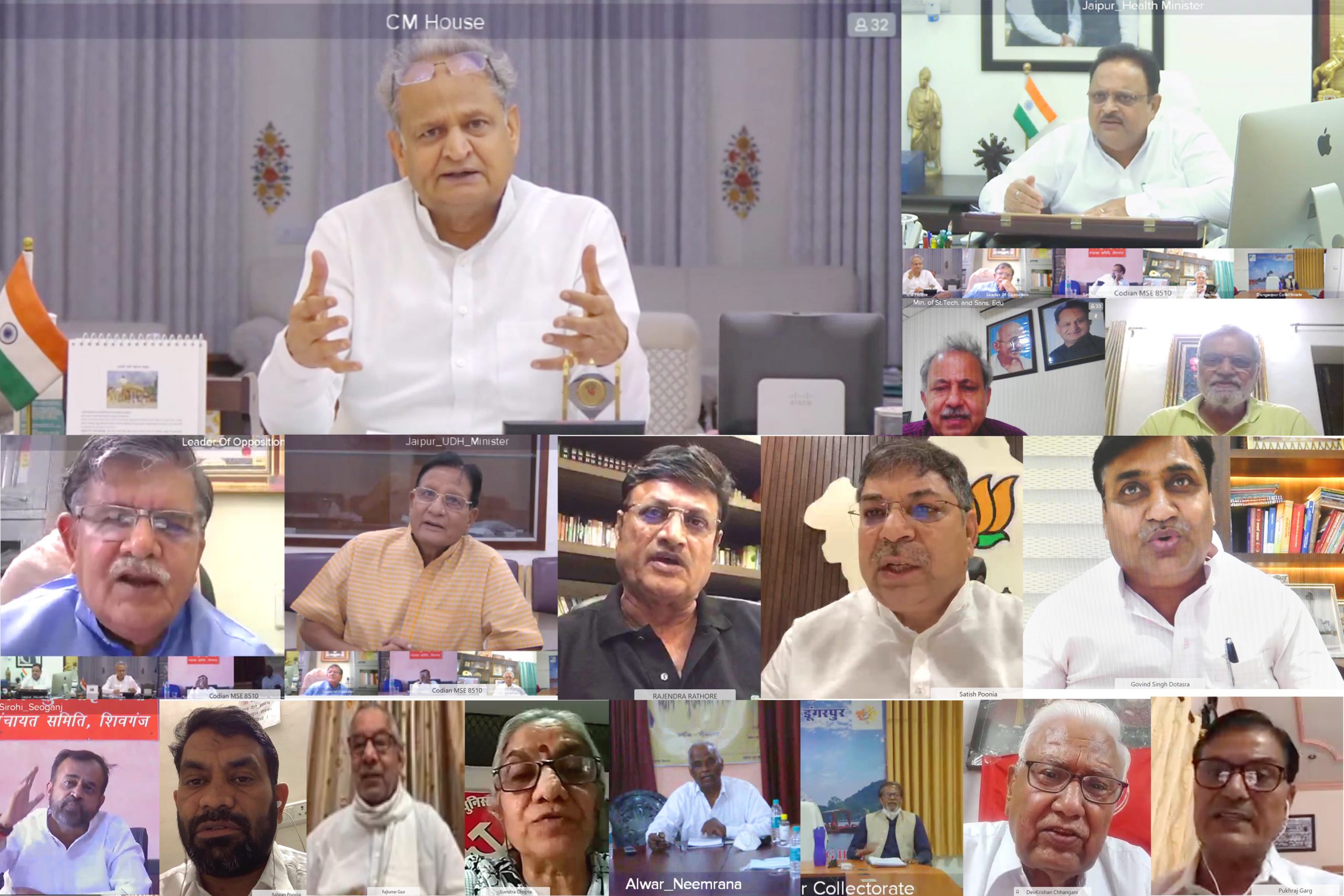 वीडियो कॉन्फ्रेंस के दौरान भारतीय जनता पार्टी के प्रदेशाध्यक्ष श्री सतीश पूनिया, कांग्रेस प्रदेशाध्यक्ष एवं शिक्षा राज्यमंत्री श्री गोविन्द सिंह डोटासरा, विधानसभा में उपनेता प्रतिपक्ष श्री राजेन्द्र राठौड़, नगरीय विकास मंत्री श्री शांति धारीवाल, राष्ट्रीय लोकदल के प्रतिनिधि एवं चिकित्सा राज्यमंत्री डॉ. सुभाष गर्ग, भारतीय ट्राइबल पार्टी के विधायक श्री रामप्रसाद, मार्क्सवादी कम्युनिस्ट पार्टी के विधायक श्री बलवान पूनिया, राष्ट्रीय लोकतांत्रिक पार्टी के विधायक श्री पुखराज गर्ग, निर्दलीय विधायक श्री राजकुमार गौड़ एवं श्री संयम लोढा, पूर्व विधायक श्री अमराराम, आम आदमी पार्टी के प्रतिनिधि श्री रामपाल जाट, सीपीआई के प्रतिनिधि श्री नरेन्द्र आचार्य, श्री डीके छंगाणी एवं श्रीमती सुमित्रा चौपड़ा आदि ने भी अपने सुझाव एवं विचार साझा किए।