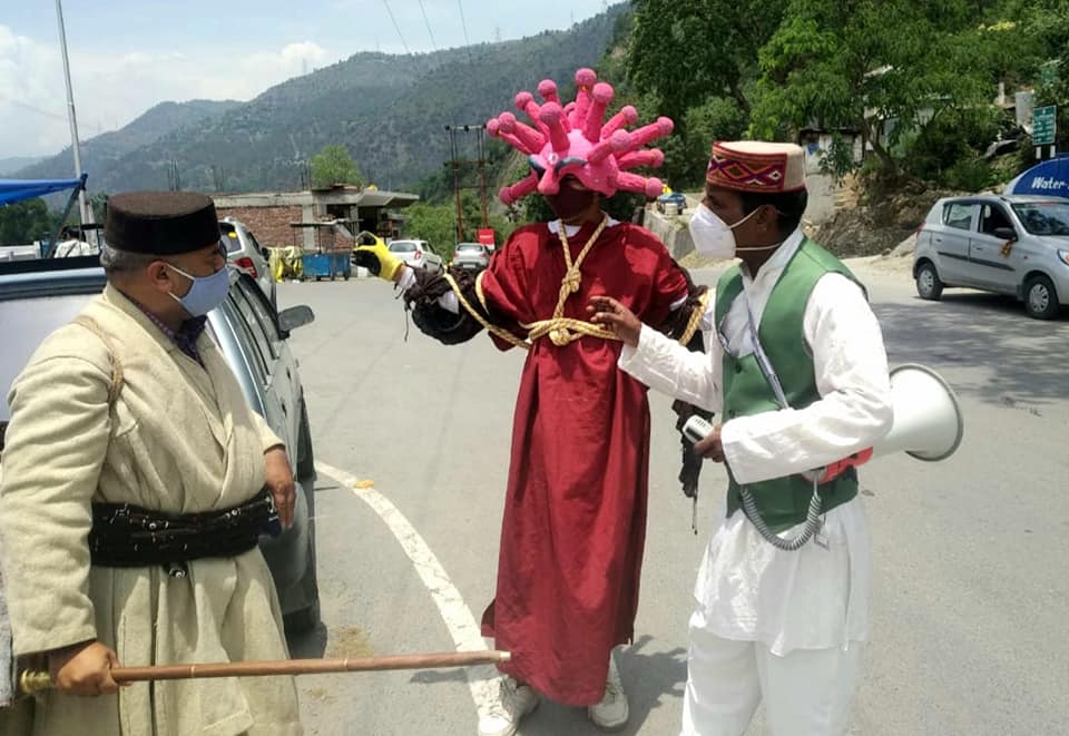 कलाकार कोरोना महामारी के विरूद्ध जारी इस लड़ाई में लोगों को जागरूक कर सामाजिक दायित्वों का बखूवी निर्वहन कर रहे हैं। आज चंबा शहर के लगते मोहल्ले सुल्तानपुर,माई का बाग और बालू के अलावा ग्राम पंचायत जांगी,गागला,उदयपुर पुखरी,हामल,घघरोटा और डूला के विभिन्न गांव के लोगों को कोरोना वायरस की रोकथाम के लिए बचाव एवं सुरक्षा उपायों पर जागरूक किया।