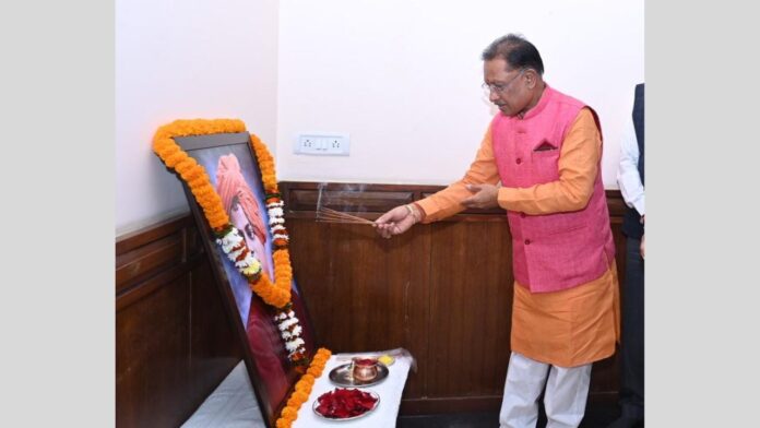 मुख्यमंत्री श्री विष्णु देव साय ने आज यहाँ राज्य अतिथि गृह पहुना में विख्यात दार्शनिक और आध्यात्मिक गुरू स्वामी विवेकानंद जी की जयंती पर उनके छायाचित्र पर पुष्प अर्पित कर उन्हें नमन किया। इस अवसर पर वित्त मंत्री श्री ओ.पी. चौधरी, स्वास्थ्य मंत्री श्री श्याम बिहारी जायसवाल और महिला एवं बाल विकास मंत्री श्रीमती लक्ष्मी राजवाड़े भी उपस्थित थीं