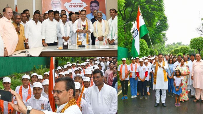मुख्यमंत्री श्री भजनलाल शर्मा ने इस दौरान छात्राओं को यात्रा के लिए शुभकामनाएं दी। उन्होंने छात्राओं के अनुरोध पर तिरंगे के साथ सेल्फी भी खिंचवाई।
