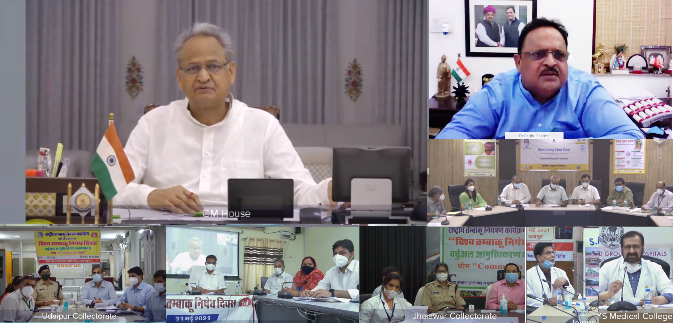 नागौर कलेक्टर डॉ. जितेन्द्र सोनी ने तम्बाकू मुक्त शिक्षण संस्थान की दिशा में जिला स्तर पर उठाए गए कदमों के बारे में प्रस्तुतीकरण दिया। निदेशक जन स्वास्थ्य डॉ. के.के. शर्मा ने तम्बाकू उत्पादों से होने वाले नुकसान के बारे में आईईसी के माध्यम से किए जा रहे प्रयासों की जानकारी दी। उन्होेंने बताया कि शिक्षण संस्थाओेेेेेेेेेेेेेेें में सेन्सिटाइजेशन कार्यक्रम चलाया गया है। एसएमएस मेडिकल कॉलेज के ईएनटी विभाग के प्रोफेसर डॉ. पवन सिंघल ने अपने प्रस्तुतीकरण में बताया कि देश में सर्वाधिक मौतें तम्बाकू जनित रोगों के कारण होती हैं।