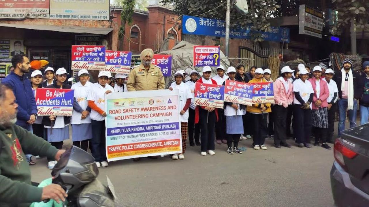 नेहरु युवा केंद्र अमृतसर, युवा कार्यक्रम एवं खेल मंत्रालय, भारत सरकार द्वारा यातायात पुलिस आयुक्तालय अमृतसर के सहयोग के साथ दिनांक 11 से 17 जनवरी 2024 तक जिला अमृतसर मे सड़क सुरक्षा जागरूकता अभियान और मेरा भारत युवा स्वयंसेवकों का सड़क यातायात के लिए स्वैच्छिक समर्थन कार्यक्रमो का आयोजन किया गया
