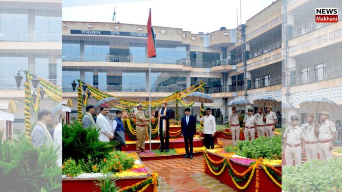 राजस्थान उच्च न्यायालय परिसर (खंडपीठ जयपुर) में गुरूवार को 78वां स्वतंत्रता दिवस समारोह पूरे हर्षोल्लास और उमंग के साथ मनाया गया। समारोह में प्रातः 8ः30 बजे राजस्थान उच्च न्यायालय के न्यायाधीश पंकज भंडारी ने ध्वजारोहण किया।