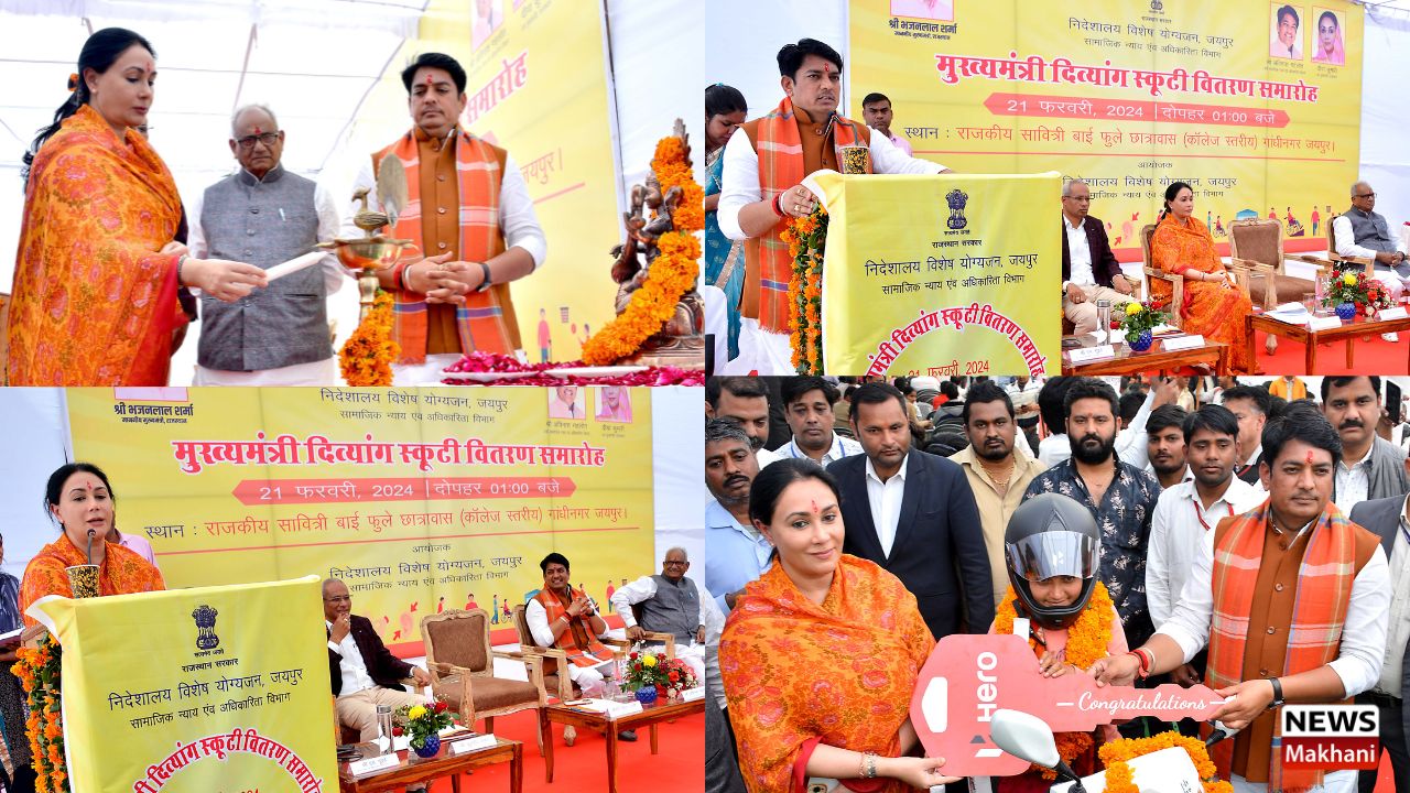 उप मुख्यमंत्री के मुख्य आतिथ्य में राजकीय सावित्री बाई फुले छात्रावास, (कॉलेज स्तरीय) गांधीनगर, जयपुर में बुधवार को  सामाजिक न्याय एवं अधिकारिता मंत्री श्री अविनाश गहलोत की अध्यक्षता में “मुख्यमंत्री दिव्यांग स्कूटी वितरण समारोह“ आयोजित किया गया।