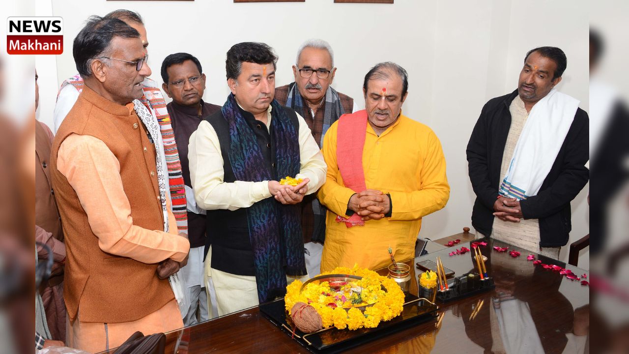 उद्योग एवं वाणिज्य विभाग के राज्य मंत्री श्री कृष्ण कुमार विश्नोई ने बुधवार को वैदिक मंत्रोच्चारण के साथ सचिवालय परिसर में स्थित मंत्रालय भवन में अपना पदभार संभाला।