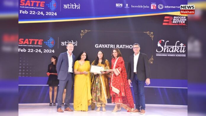 ग्रेटर नोएडा में साउथ एशिया ट्रेवल एण्ड टूरिज्म (साटे) इंडियन ट्रेवल मार्ट के दूसरे दिन शुक्रवार को आयोजित समारोह में राजस्थान पर्यटन विभाग कि प्रमुख शासन सचिव श्रीमती गायत्री राठौड़ को नारी शक्ति सम्मान दिया गया।