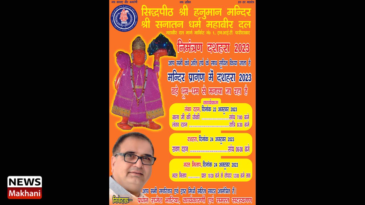 सिद्धपीठ श्री हनुमान मंदिर मार्केट नंबर 1 में मनाया जाएगा भव्य दशहरा समारोह