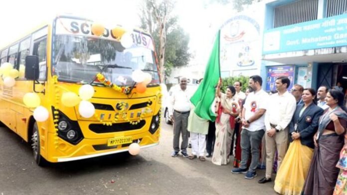राज्यमंत्री श्रीमती गौर ने स्कूल की नि:शुल्क परिवहन सेवा का किया शुभांरभ