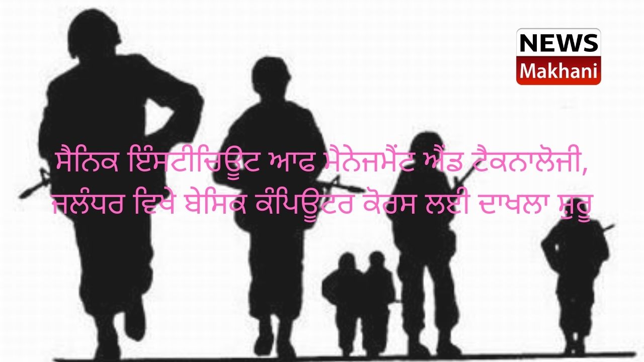 ज़िला रक्षा सेवाएं भलाई दफ़्तर, जालंधर में चलाए जा रहे सैनिक इंस्टीट्यूट आफ मैनेजमेंट एंड टैकनालॉजी, जालंधर में 2 अगस्त 2021 से तीन महीने का बेसिक कंप्यूटर कोर्स शुरू किया जा रहा है, जिसके लिए दाख़िला शुरू हो गया है।इस बारे में और ज्यादा जानकारी देते हुए इंस्टीट्यूट के डायरैक्टर -कम -ज़िला रक्षा सेवाएं भलाई अधिकारी, जालंधर कर्नल दलविन्दर सिंह (रिटा.) ने बताया कि इस कोर्स में दाख़िला लेने की आखिरी तारीख़ 2 अगस्त 2021 है जबकि कम से -कम शैक्षिक योग्यता दसवीं पास है।