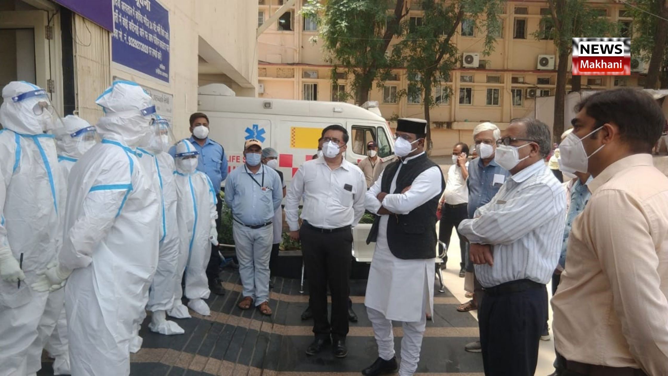 चिकित्सा शिक्षा एवं भोपाल गैस त्रासदी राहत एवं पुनर्वास मंत्री श्री विश्वास कैलाश सारंग ने हमीदिया अस्पताल परिसर में बनने वाले 20 बिस्तरों के कोविड बलून अस्पताल के लिए जगह का अवलोकन किया। उन्होंने कोविड डैडिकेटेड वार्ड का निरीक्षण भी किया और वीडियो कॉन्फ्रेंसिंग के जरिए मरीजों का हालचाल भी जाना। इस दौरान उन्होंने कहा कि कोरोना के खिलाफ युद्ध में मनोबल बनाये रखना बेहद जरूरी है। मरीजों और हॉस्पिटल स्टाफ का मनोबल बढ़ाने के उपायों पर भी विचार किया जा रहा है। श्री सारंग ने हमीदिया अस्पताल के निरीक्षण के उपरांत आला अधिकारियों के साथ समीक्षा बैठक की। बैठक में कोरोना नियंत्रण के साथ व्यवस्थाओं को सुदृढ़ करने के लिये विस्तृत चर्चा हुई।