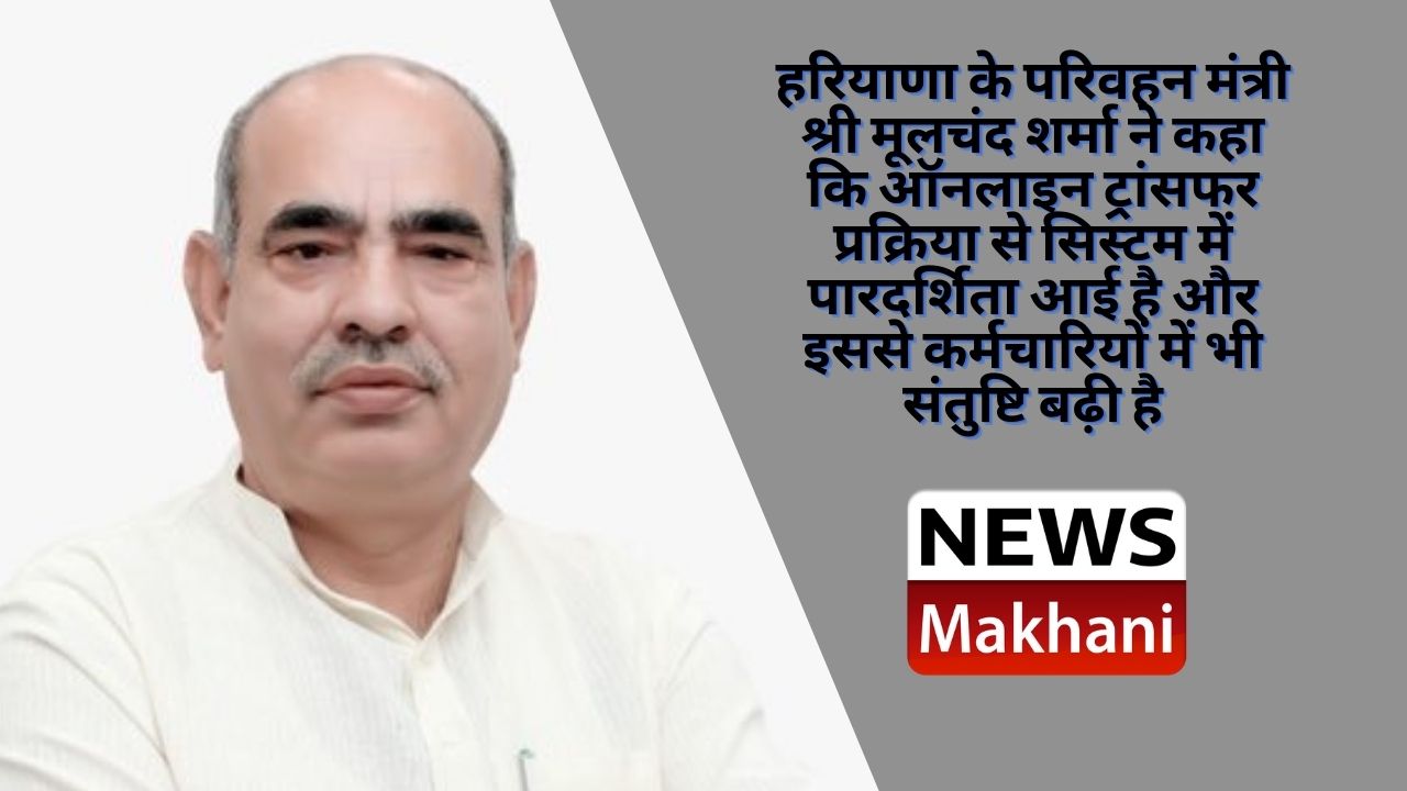 हरियाणा के परिवहन मंत्री श्री मूलचंद शर्मा ने कहा कि ऑनलाइन ट्रांसफर प्रक्रिया से सिस्टम में पारदर्शिता आई है और इससे कर्मचारियों में भी संतुष्टि बढ़ी है