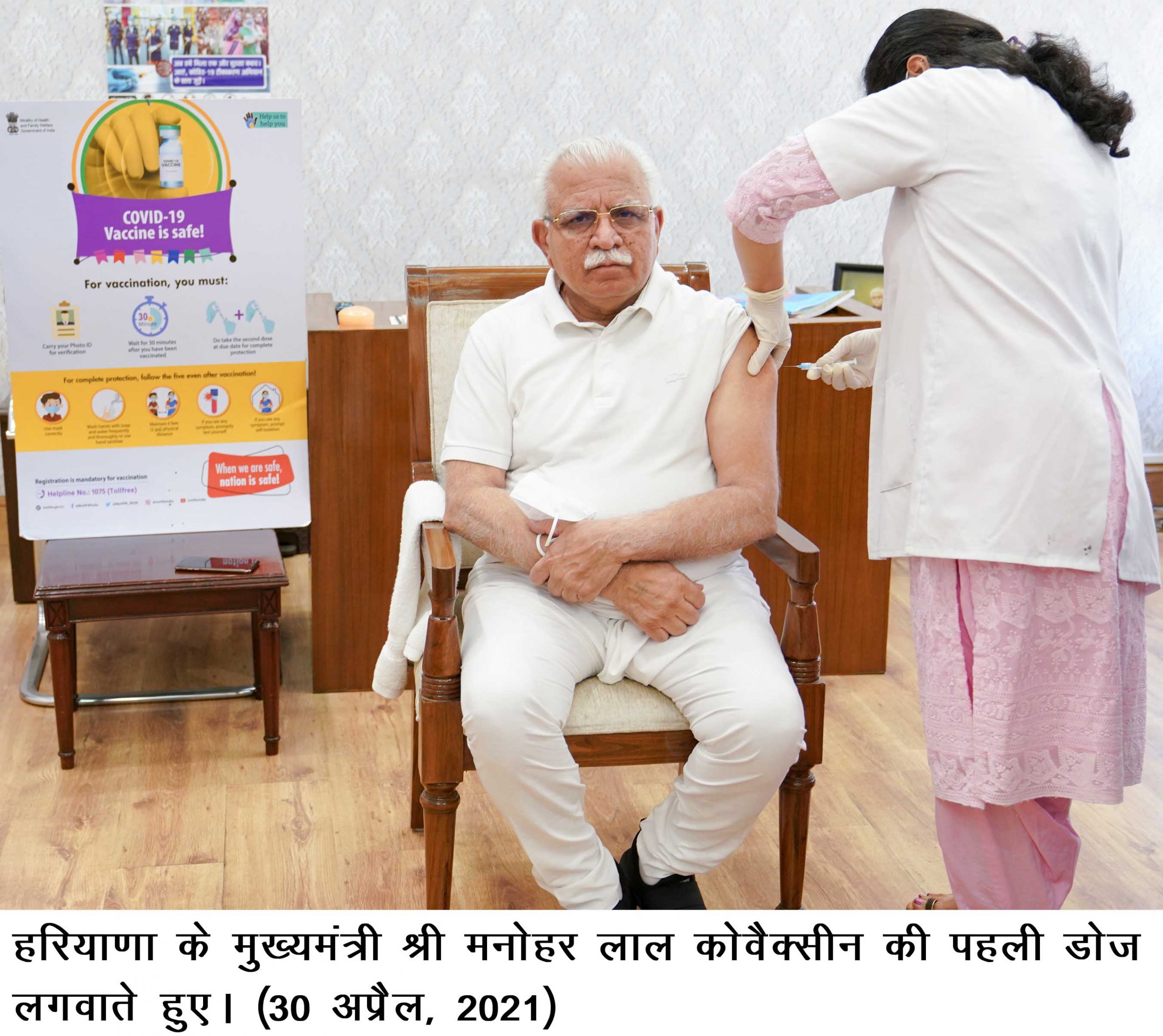कोविड 19हरियाणासमाचार हरियाणा के मुख्यमंत्री श्री मनोहर लाल कोवैक्सीन की पहली डोज लगवाते हुए। (30 अप्रैल, 2021) 30/04/2021 FacebookTwitterPinterestWhatsApp