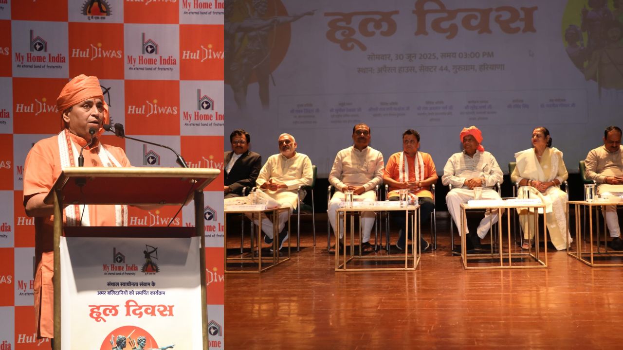 संथाल स्वाधीनता संग्राम के 10,000 वीर बलिदानियों की स्मृति में ‘हूल दिवस’ का भव्य आयोजन किया गया। माय होम इंडिया और वनवासी कल्याण आश्रम, हरियाणा के संयुक्त तत्वावधान में गुरुग्राम स्थित अपैरल हाउस सभागार में आयोजित इस कार्यक्रम में मुख्य अतिथि के रूप में पवन जिंदल (क्षेत्रीय संघचालक, राष्ट्रीय स्वयंसेवक संघ), श्रीमती राज रानी मल्होत्रा (महापौर, गुरुग्राम) एवं श्री रामअवतार गर्ग (चेयरमैन, हरियाणा डेयरी डेवलपमेंट बोर्ड), वरिष्ठ भाजपा नेता श्री सुनील देवधर ने वीरों याद किया।