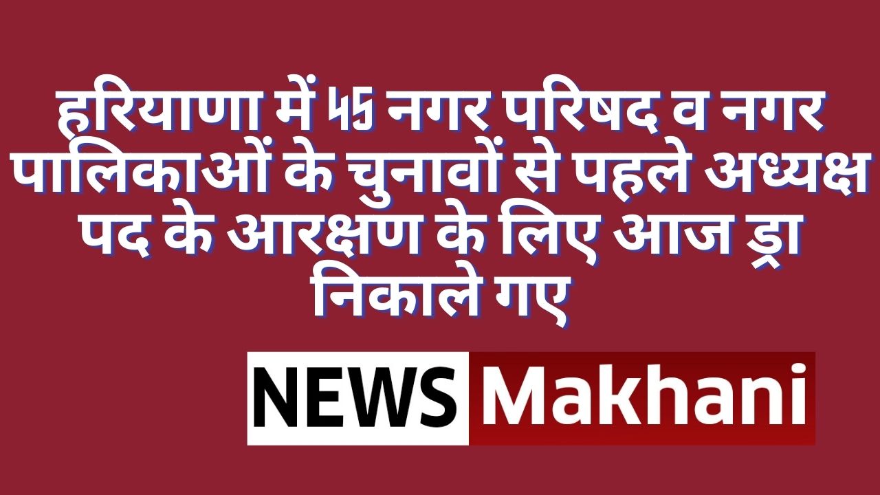 चंडीगढ़, 22 जून – हरियाणा में 45 नगर परिषद व नगर पालिकाओं के चुनावों से पहले अध्यक्ष पद के आरक्षण के लिए आज ड्रा निकाले गए। इनमें अनुसूचित जाति वर्ग के लिए नौ सीटें हैं, जिनमें तीन महिलाओं के लिए आरक्षित हैं। पिछड़ा वर्ग की चार सीटों में दो महिलाओं के लिए आरक्षित की गई हैं, जबकि सामान्य वर्ग की दस सीटें महिलाओं के लिए आरक्षित रहेंगी।