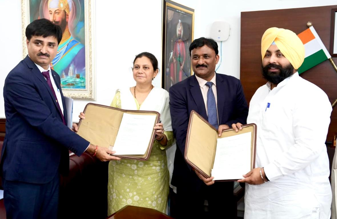 पंजाब के स्कूल शिक्षा मंत्री स हरजोत सिंह बैंस और स्कूल शिक्षा सचिव श्रीमती अनिंदिता मित्रा, आईएएस की उपस्थिति में आज यहां डायरेक्टोरेट ऑफ एलीमेंट्री एजुकेशन (मिड-डे मील) और केनरा बैंक, चंडीगढ़ के बीच एक समझौता (एमओयू) साइन किया गया। इस साझेदारी का उद्देश्य कुक-कम-हेल्परों को वित्तीय सुरक्षा और अन्य सुविधाएं प्रदान करना है।