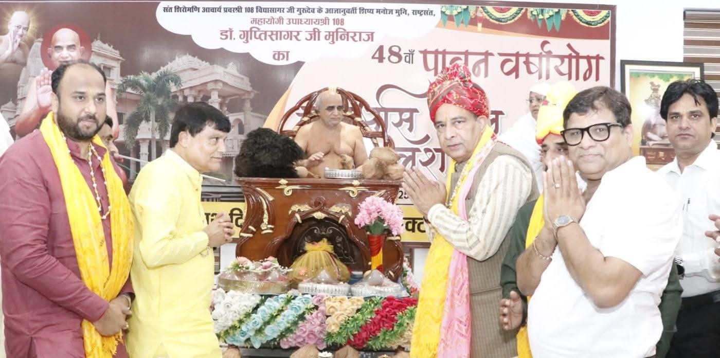 भाजपा प्रदेश अध्यक्ष मोहन लाल बड़ौली ने गुप्तिसागर जी मुनिराज को नमन कर लिया आशीर्वाद