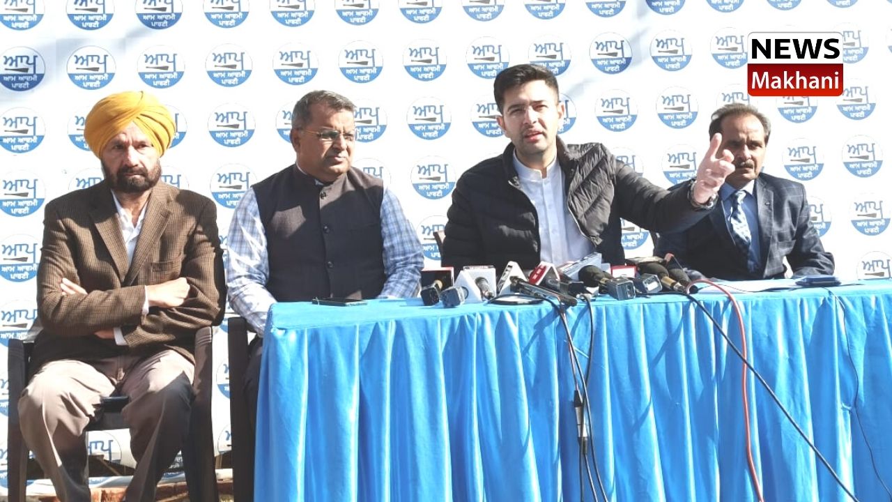 आम आदमी पार्टी (आप) पंजाब मामलों के सह-प्रभारी और दिल्ली से विधायक राघव चड्ढा ने बुधवार को यहां पार्टी हेडक्वार्टर में आयोजति प्रेस कांफ्रेंस में पंजाब कांग्रेस के अध्यक्ष नवजोत सिंह सिद्धू की ओर से एक प्रोग्राम में पंजाब पुलिस के अधिकारीयों पर की गई टिपणी को शर्मनाक हरकत करार दिया है। इस मौके पर आम आदमी पार्टी पंजाब के प्रवक्ता नील गर्ग, जगतार सिंह संघेड़ा और सतीश सैनी भी मौजूद थे।