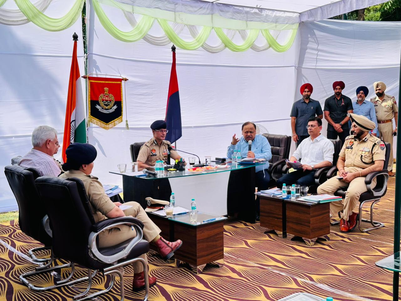 डी जी पी गौरव यादव जो ए डी जी पी एंटी-गैंगस्टर टास्क फोर्स प्रमोद बान और ए डी जी पी काउंटर इंटेलिजेंस अमित प्रसाद के साथ दो पुलिस जिलों—तरनतारन और बटाला में सुरक्षा समीक्षा बैठकें की अध्यक्षता कर रहे थे, ने नार्को-आतंकवाद और संगठित अपराध के उभरते खतरों से निपटने के लिए विचार-विमर्श किया। उन्होंने त्योहारों के सीज़न की तैयारियों और पुलिस बल की तैनाती का भी विस्तार से जायज़ा लिया।