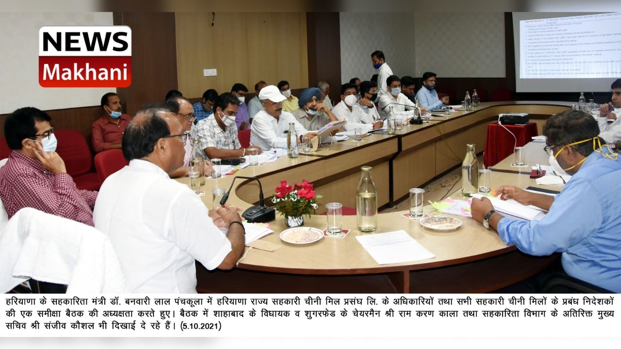 हरियाणा के सहकारिता मंत्री डॉ. बनवारी लाल ने कहा कि आने वाले गन्ना पिराई सीजन के तहत राज्य की सभी सहकारी चीनी मिलों को अक्तूबर के अंतिम सप्ताह से लेकर नवंबर के दूसरे सप्ताह के दौरान चालू कर दिया जाएगा ताकि गन्ना किसानों को किसी भी प्रकार की दिक्कत का सामना न करना पडें़। इसके अलावा, उन्होंने संबंधित अधिकारियों को निर्देष देते हुए कहा कि एथोनॉल के उत्पादन के लिए बाजरे व आलू में पाए जाने वाले गलूकोज के बारे में अध्ययन किया जाए ताकि बाजरे व आलू से भी एथोनॉल के उत्पादन की संभावनाएं तलाषी जा सकें।
