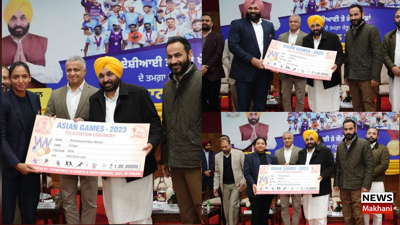 राष्ट्रीय और अंतरराष्ट्रीय खेलों में पदक जीतने वाले पंजाब के खिलाडिय़ों ने एशियन और राष्ट्रीय खेलों के 168 विजेताओं को बनता मान-सम्मान देने और 33.83 करोड़ रुपए के नकद इनाम देने के लिए आज मुख्यमंत्री भगवंत सिंह मान के नेतृत्व वाली पंजाब सरकार का धन्यवाद किया।