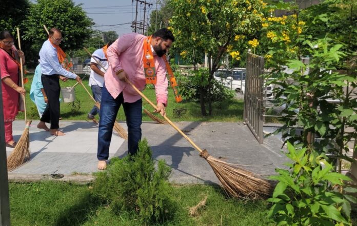 BJP SC Morcha today organized a Swachhata Abhiyan at Dr. B.R. Ambedkar Chowk, Jammu as a part of the ongoing Seva Pakhwada celebrations marking the 75th birthday of Prime Minister Narendra Modi.